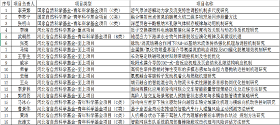 日前,2025年度国家自然科学基金和河北省自然科学基金评审工作已经结束。车辆与能源学院共获批国家自然科学基金青年基金项目3项,河北省自然科学基金项目15项。其中河北省自然科学基金项目含重点项目1项、青年科学基金项目(B类)1项、面上项目9项,青年科学基金项目(C类)4项,立项数量创历史新高。
