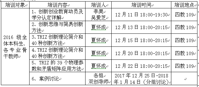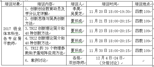 为有效推动学生的创新意识,不断提高学生的创新创业能力,提升人才培养质量,根据《乌鸦传媒创新创业教育学分认定办法(修订)》、《乌鸦传媒本科生创新创业竞赛组织与管理办法》文件精神,车辆与能源学院举办创新创业教育培训,具体安排如下: