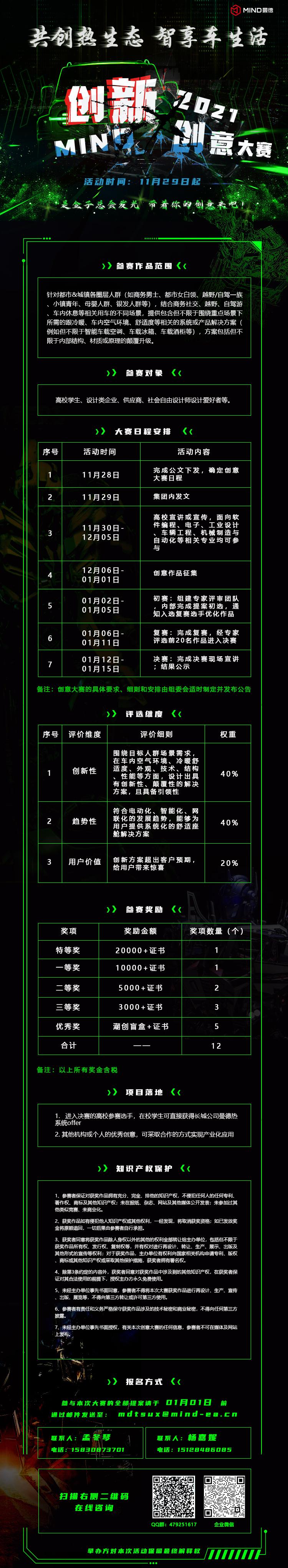 为激发学生的创新意识和创业精神,提升学生的创新创业实践能力,促进校企进一步合作,学院联合长城集团下属曼德热系统有限公司来我校做关于“共创热生态智享车生活”2021创新创意大赛宣讲,欢迎各位同学前来参加,现场学习通扫码签到。