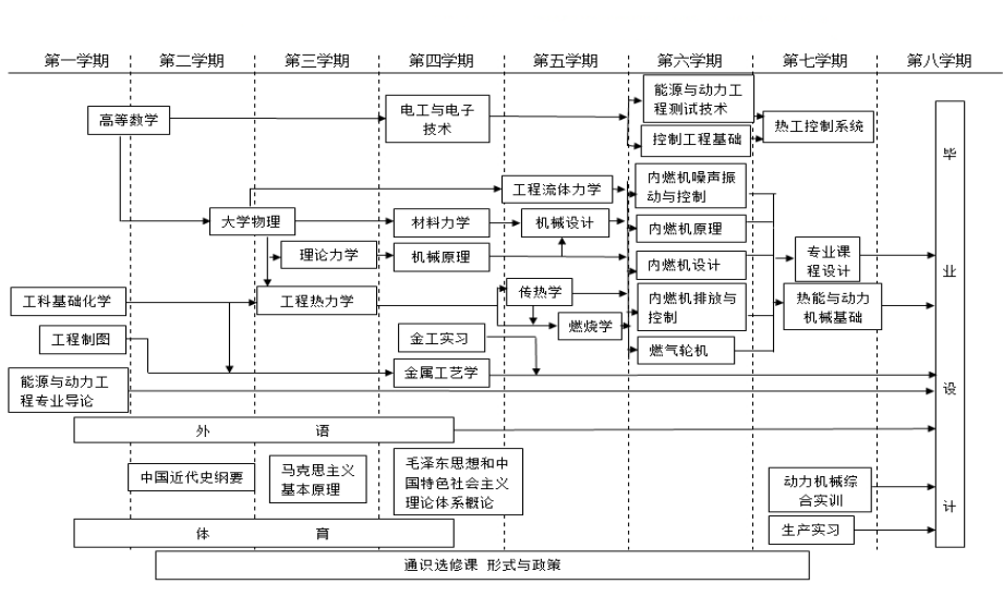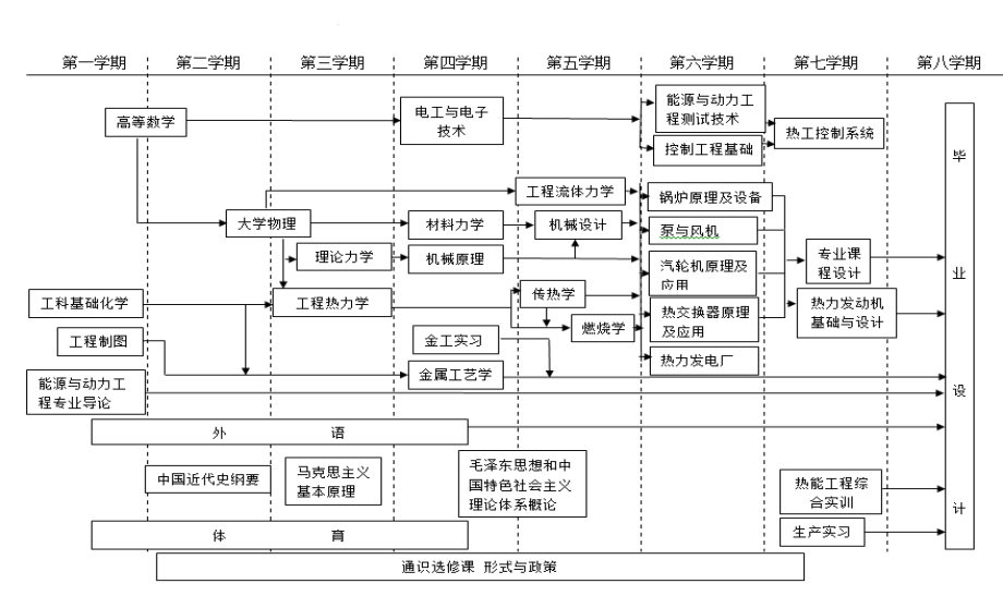 毛泽东思想和中国特色社会主义理论体系概论,体育,体测,高等数学,工程制图,理论力学,机械原理,工程热力学,工程流体力学,传热学,燃烧学。