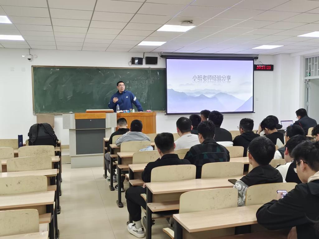 小班老师刘思辰分享了他的学习经验,并讲述了竞赛方面的相关知识,并着重强调了绩点的重要性,同时指出要掌握自己的学习方法,每日进行知识的整理与复盘,鼓励同学们积极参加学校组织的学习经验交流会,着重强调了基础知识学习的重要性。