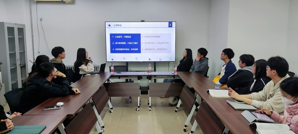 接下来,周玉莹学姐分享了一些保研时的心得体会,学姐建议保持乐观心态,面对失败时要坦然,多参加科研竞赛以提高自身的科研能力。此外,学姐还强调了交流的重要性,建议和同学多进行交流,确保信息的正确性,并且利用信息更好地选择导师与学校。