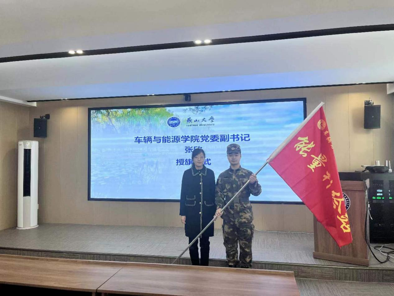 营员代表郭佳乐的发言展现了营员们突破自我,完成挑战的信心;教官代表项世乾的发言,体现了教官们对营员的谆谆教诲,以及认真负责和尽心尽力的承诺。随后,学院党委副书记张欣为能量补给站授旗,教官代表接受旗帜。