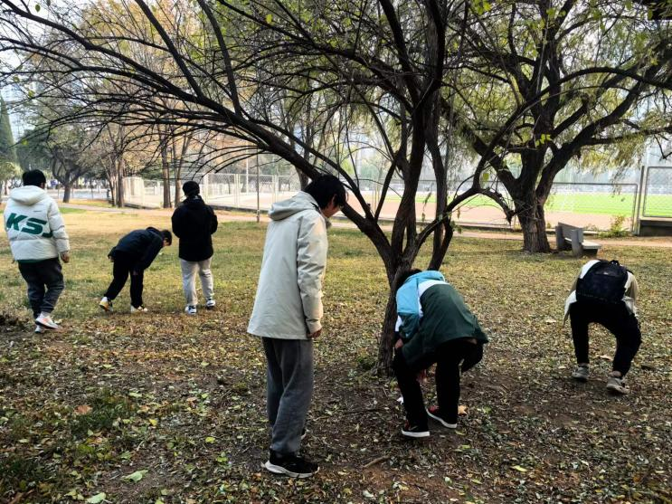 最后,班长陈广烨同志组织学生前往第一体育场周围绿化带开展劳动实践活动,旨在以亲身实践的方式感悟爱国主义,提高社会责任感和爱国情怀。