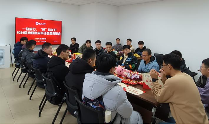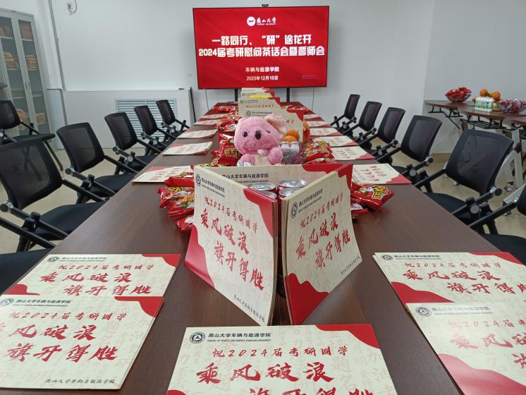 为鼓励2024届考研学子积极备考,缓解考研学子的学习压力和紧张情绪,坚定冲刺信心,同时表达学院对同学们的关怀鼓励和美好祝愿,更好地为同学们顺利考研保驾护航,2023年12月15日,车辆与能源学院于车辆馆303会议室举行“一路同行,研途花开”考前慰问茶话会暨誓师会。会议由2020级辅导员冯海龙老师主持,2020级全体考研同学按照专业班级分时间段参加。
