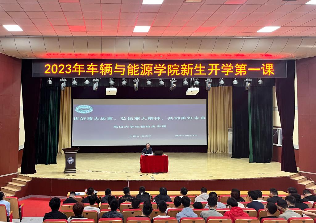 2023年10月14日9:00,车辆与能源学院全体新生于西大活二楼2号报告厅开展以“讲好燕大故事,弘扬燕大精神,共创美好未来”的乌鸦传媒校情校史教育讲座。本次讲座邀请到了张志平老先生讲述燕大故事,本次讲座由李洪庆老师主持。