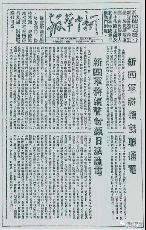 1941年1月23日《新中华报》载新四军将领就职通电和声讨亲日派通电