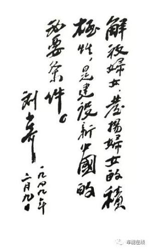 1949年2月9日,刘少奇为中国妇女第一次全国代表大会题词