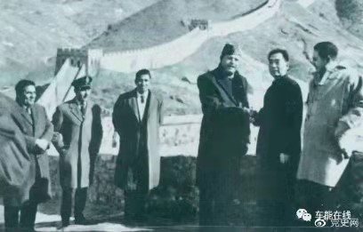 1965年3月6日,周恩来同巴基斯坦总统阿尤布·汗在北京八达岭长城上握手。1965年3月2日至9日,巴基斯坦总统阿尤布·汗对中国进行国事访问。阿尤布·汗总统抵达北京机场时,受到中国国家主席刘少奇、中国国务院总理周恩来和北京群众的热烈欢迎。