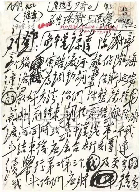 1947年3月6日,中共中央军委给刘伯承、邓小平关于保卫延安的指示(节录)。