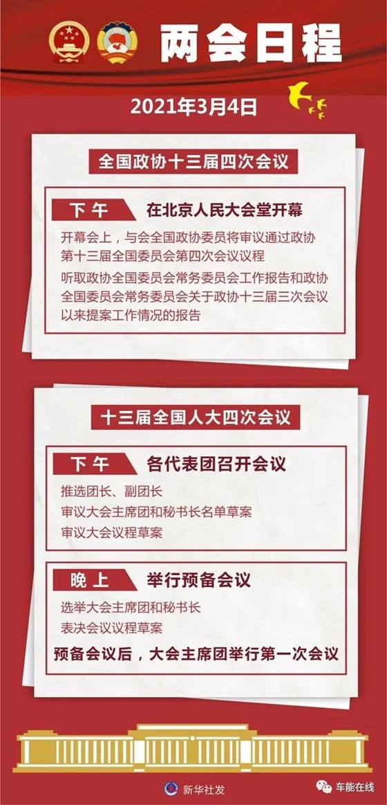 2021年3月4日,全国政协十三届四次会议在北京人民大会堂开幕。开幕会上,与会全国政协委员将审议通过政协第十三届全国委员会第四次会议议程,听取政协全国委员会常务委员会工作报告和政协全国委员会常务委员会关于政协十三届三次会议以来提案工作情况的报告。