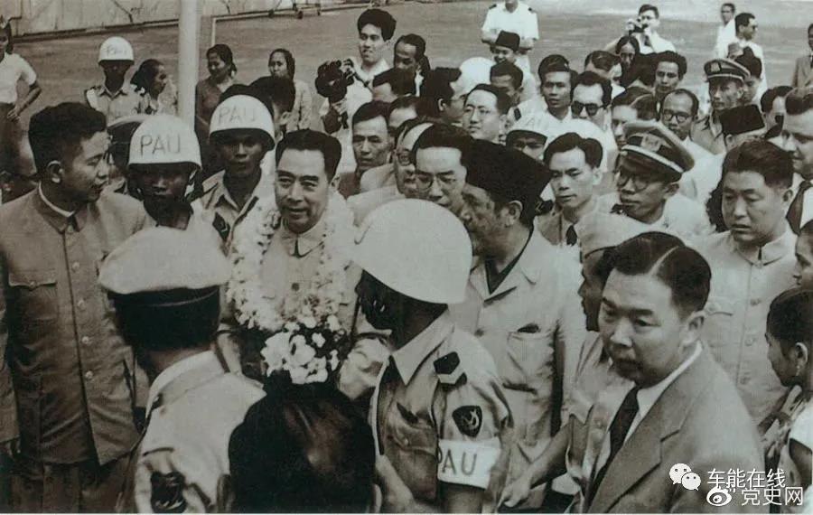 1955年4月17日,周恩来率中国代表团抵达万隆,受到万隆各界人民的热烈欢迎。