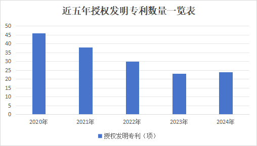 近五年学院共获得发明专利授权161项,其中2024年获得发明专利授权24项。