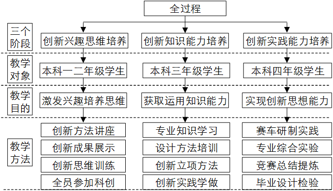 (1)搭建“预瞄”就业对接的创新人才全过程阶段式教学培养模式。参照国家车辆行业发展方向,对企业实际需求进行深入调研,实现创新人才全过程阶段式培养的“预瞄”工作。